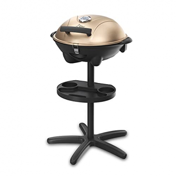 Der SUNTEC BBQ-9479 Elektro Kugelgrill verfügt über einen laut Hersteller schnell abmontierbaren Standfuß und kann so nach nur wenigen Handgriffen auch als Tischgrill eingesetzt werden. Am Deckel des Grills befindet sich ein hitzegeschützter Handgriff und ein Thermometer für die Anzeige der Temperatur im Bereich von 50 bis 300 Grad Celsius. Separat lässt sich eine Abdeckhaube bestellen, um den Grill auf Dauer wetterfest zu machen. Doch auch so ist der Elektrogrill gemäß der Schutzart IPX4 gegen Spritzwasser geschützt und für die Outdoor-Nutzung geeignet. Weitere Highlights sind eine Ablage für Grillgut und Saucen und ein stufenlos regulierbares Thermostat mit einer maximalen Leistung von 2.400 Watt. Je nachdem, wie der Grill genutzt wird, ist mit ihm sowohl direktes als auch indirektes Grillen möglich.